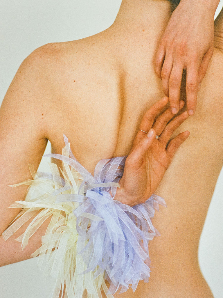 A sheer body ornament for wrist or hair.